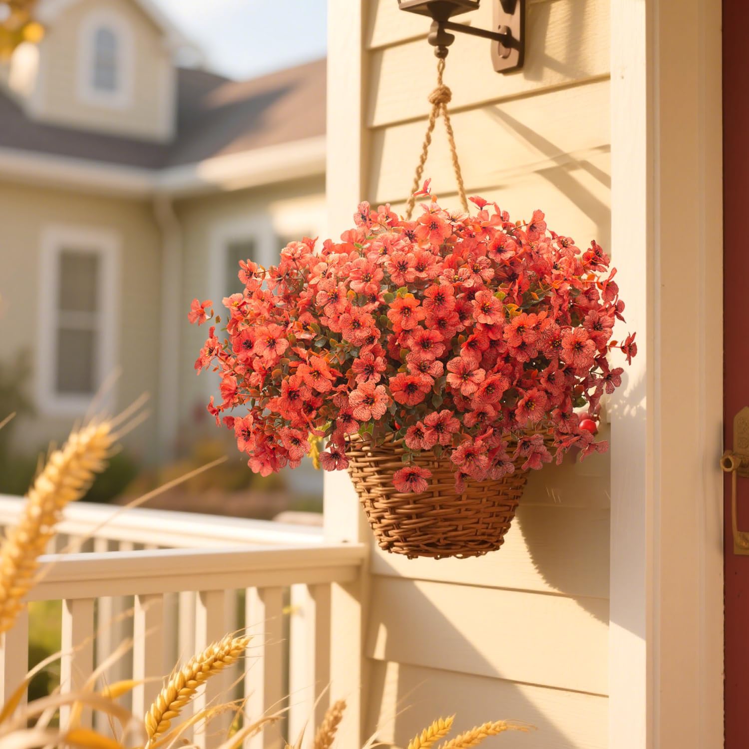 - 🏡 Indoor/Outdoor Versatility: Perfect for porch steps, patio tabletops, garden fences. Easily arrange in planters, window boxes, entryway vases – instantly upgrades fall ambiance.