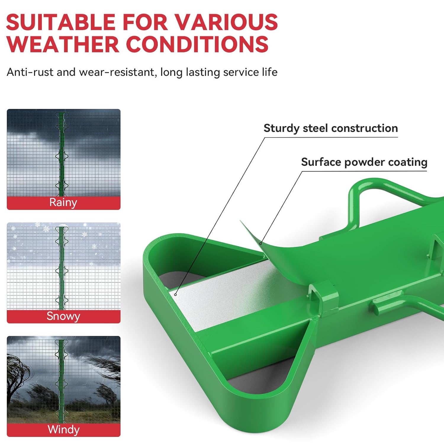 - Heavy Duty Steel Structure: Fence stretcher bar is made of high-quality steel and the green powder-coated surface provides rust resistance and corrosion resistance. It is suitable for long-term outdoor use and can withstand various weather conditions.