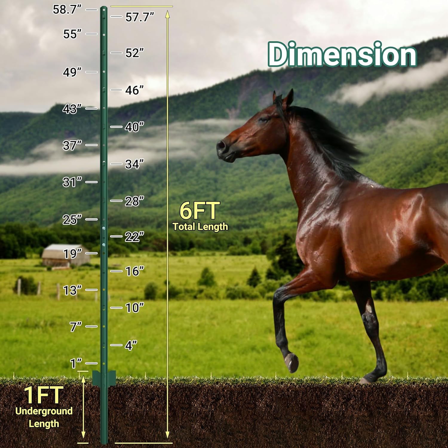 - What You Will Get: 8 pack of green metal fence stakes for wire fencing; Total height of each fence post is 6 ft, with 1 ft under the ground, great for 5 ft welded wire, hardware cloth, steel wire, ropes and other utility fence