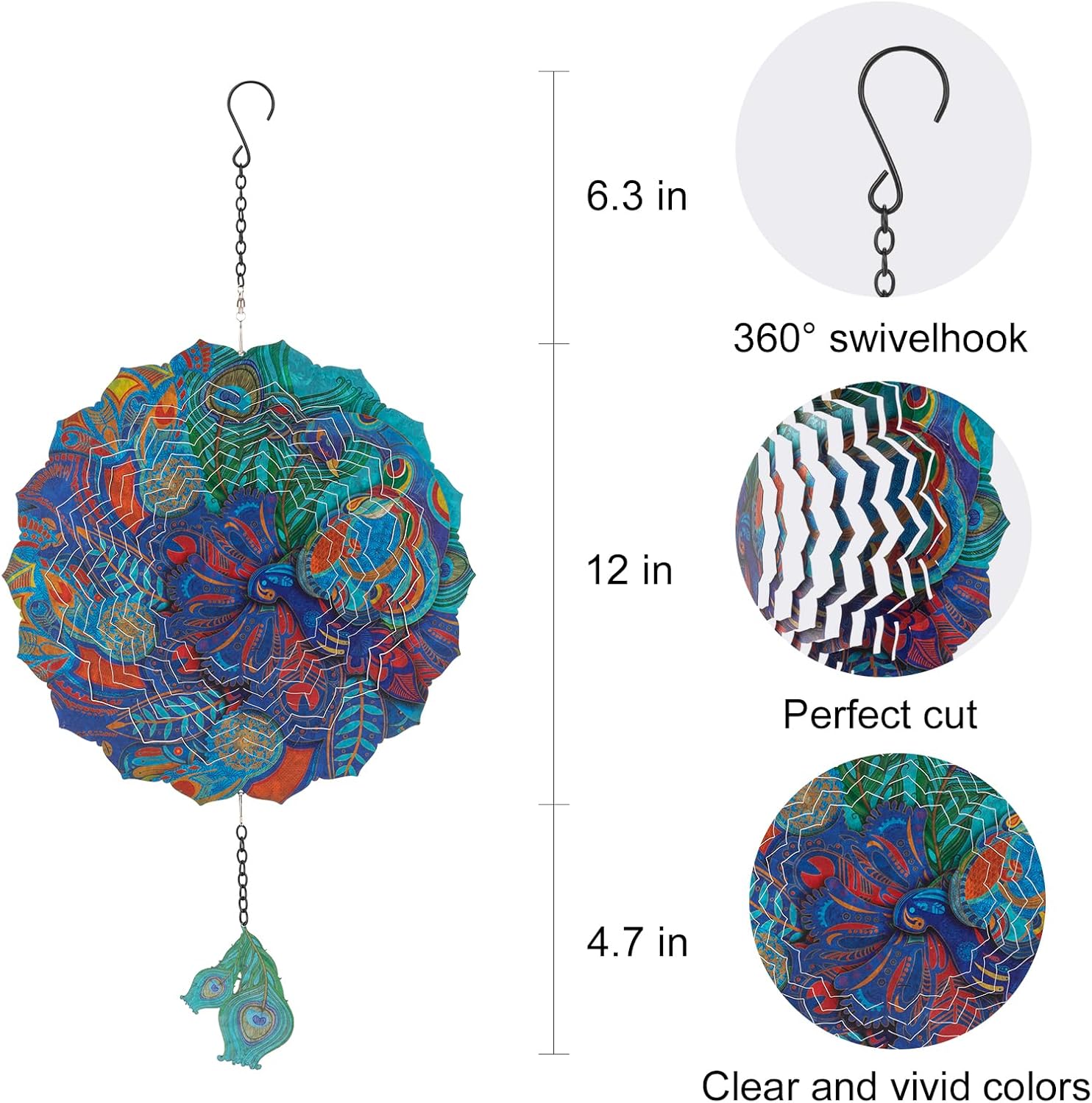 - ELEGANT PEACOCK DESIGN: Crafted using precision 3D cutting technology, this wind spinner features a stunning peacock pattern that adds a touch of elegance to any outdoor space.