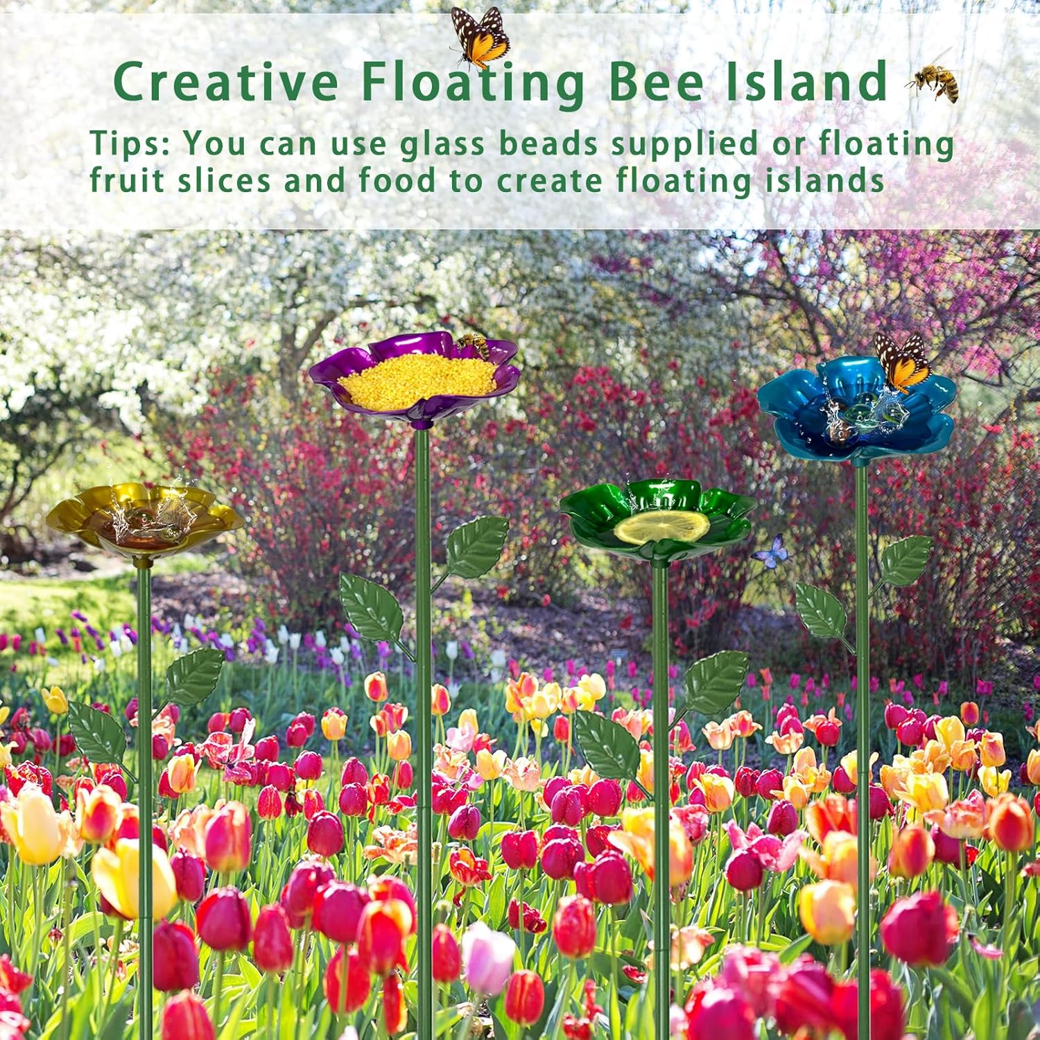 - Colorful Watering Stations:Bee watering station for garden offers a safe drinking spot for bees and butterflies.natural-looking stems and leaves designed to attract beneficial insects like bees and butterflies to your garden for pollination