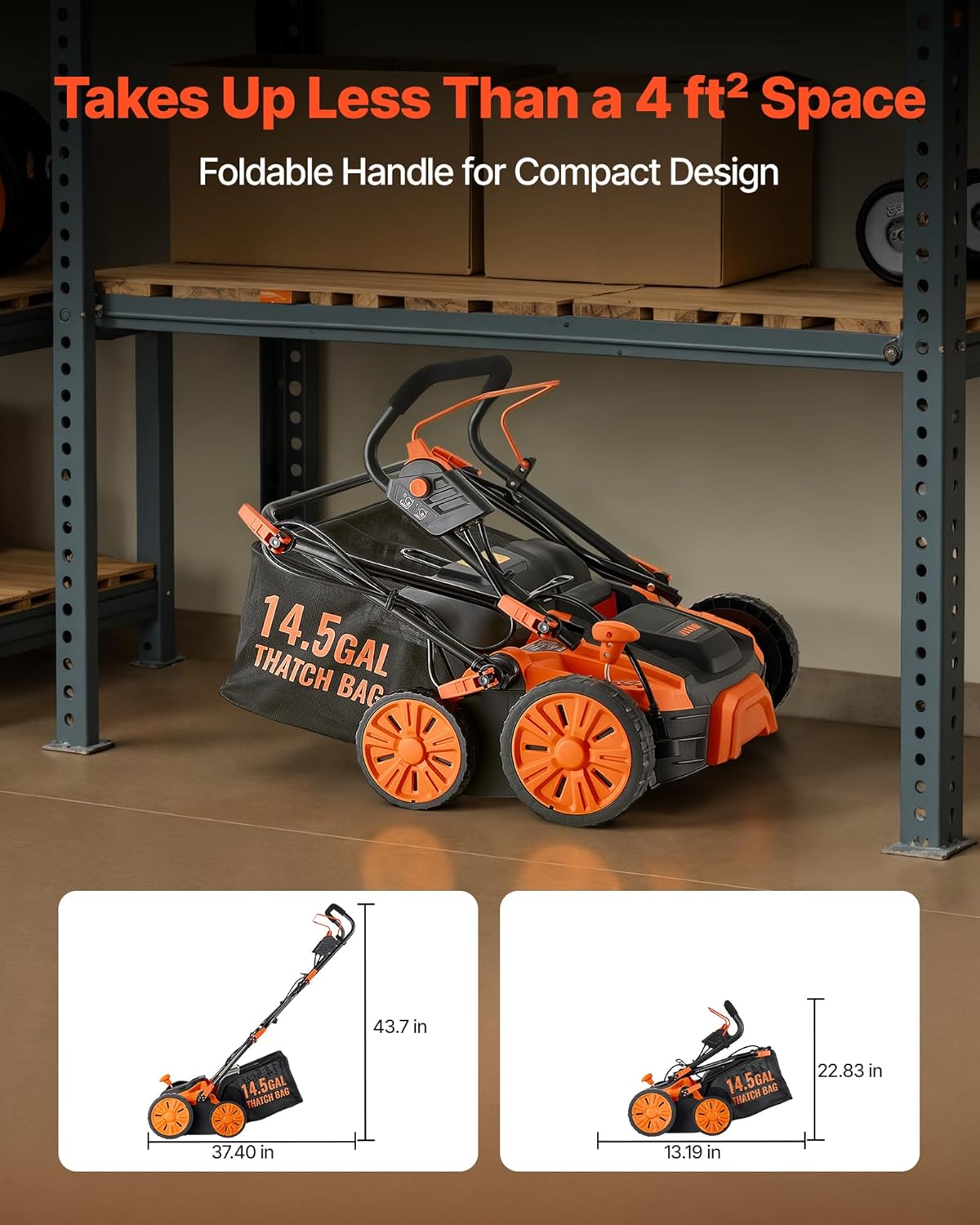 - Easy Setup & Compact Storage: This corded dethatcher and scarifier boasts a quick 2-step start-up with no complicated assembly. Its foldable handle reduces overall height for compact storage, and the lightweight 26.68 lbs body makes transport easy