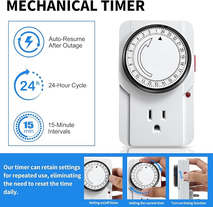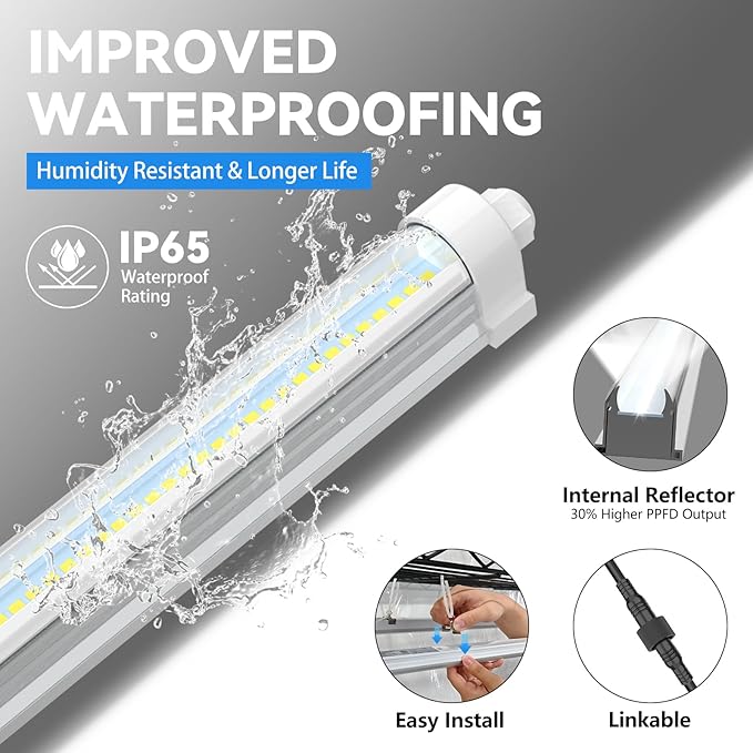 - 【Waterproof Design】 Our full-spectrum grow lights feature an integrated waterproof design, ideal for the constant humidity of a greenhouse. Individual tier switches allow for targeted use and energy savings. A user-friendly mechanical timer provides automated supplemental lighting, while built-in reflectors boost PPFD output to maximize growth effectiveness.