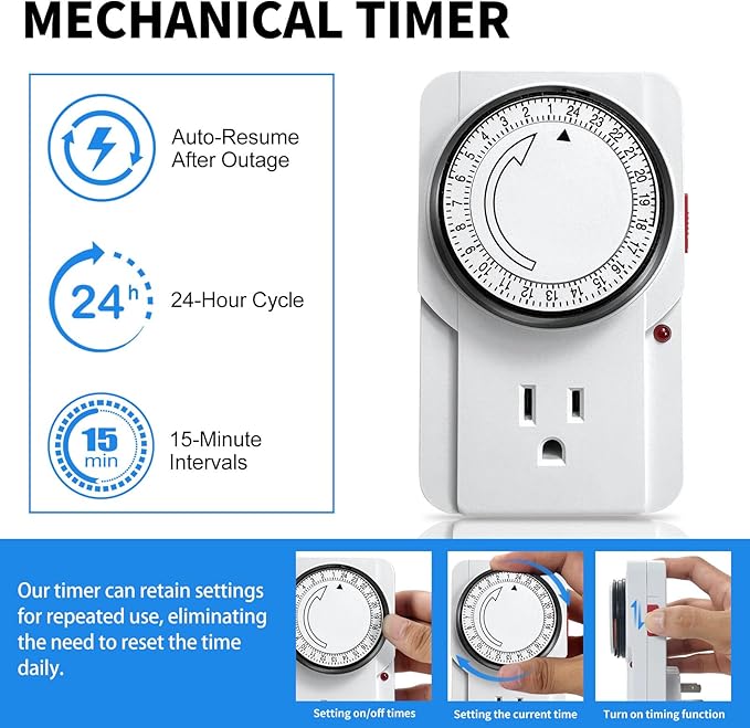 - 【Waterproof Design】 Our full-spectrum grow lights feature an integrated waterproof design, ideal for the constant humidity of a greenhouse. Individual tier switches allow for targeted use and energy savings. A user-friendly mechanical timer provides automated supplemental lighting, while built-in reflectors boost PPFD output to maximize growth effectiveness.