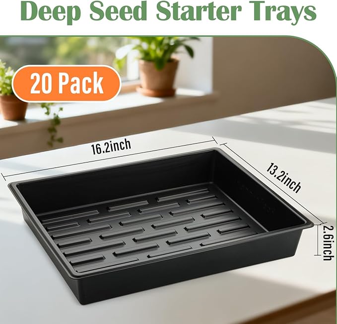 - 【Perfect Planting Trays】RooTrimmer seed starter trays include 20 pack seedling trays. They have no drainage holes, perfect microgreens growing trays in greenhouses. So you can grow your own vegetables and flowers at home