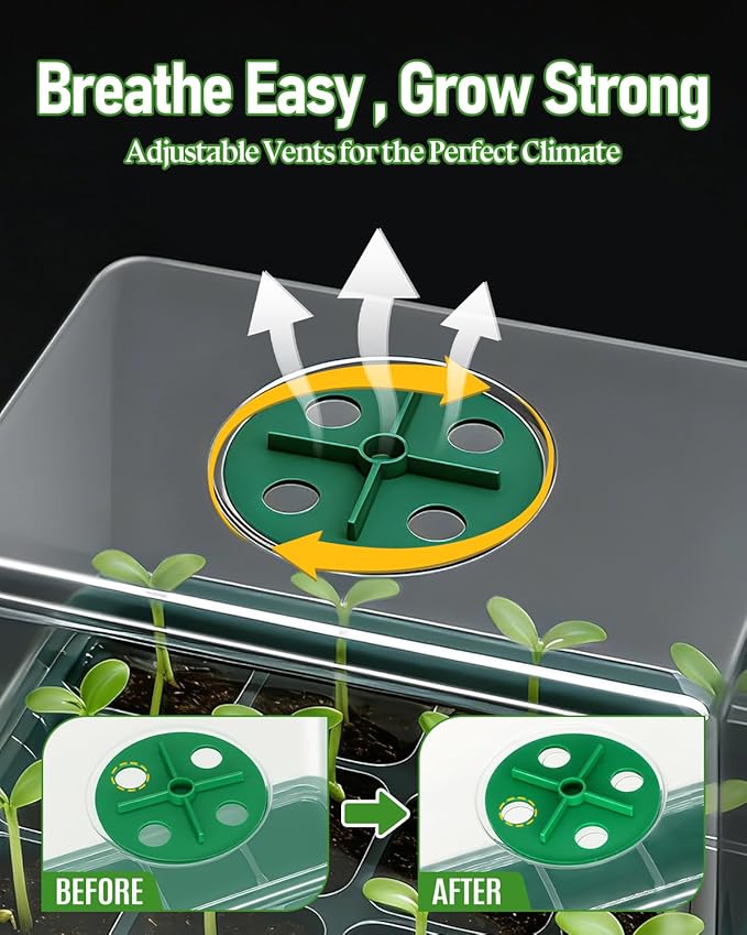 - Adjustable Vents: The seed starter kit cover allows for convenient access, while the rotating air vent promotes airflow and helps maintain ideal growing conditions