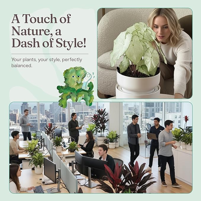 - Advance Self-Watering System for Effortless Hydration: Integrated water reservoir and wick system provide steady moisture, keeping plants consistently hydrated with minimal effort, ideal for anyone seeking reliable self watering pots for indoor plants.