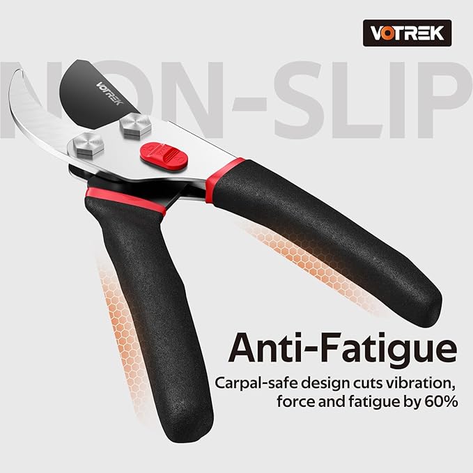 - 【Low-Maintenance & Rust-Proof Design】 Unlike ordinary pruners that need frequent cleaning, VOTREK gardening shears' sealed spring system is jam-proof and resists rust. This means minimal maintenance is required – just a simple wipe-down keeps it performing like new, saving you time and effort