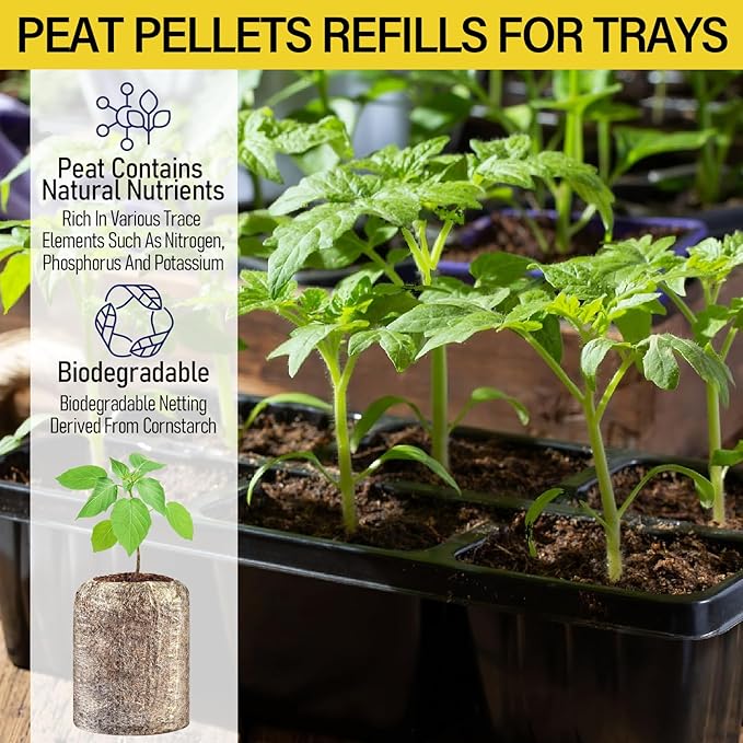- Premium Material: Peat pellets are made of peat, which has great aeration and water retention, so it is beneficial for plants to help plant growth, and can be completely degraded; They are small and compact, easily and cleanly storable, easy to transition into bigger containers