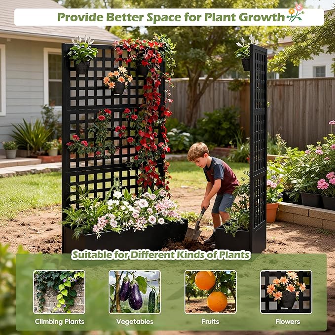 - HEALTHY GROWTH FOR CLIMBING PLANTS - This plant bed has drainage holes at the bottom to prevent waterlogging and root rot, allowing your plants to thrive. The trellis is especially suitable for climbing plants, you can grow vegetables, small fruits, and flowers on it.